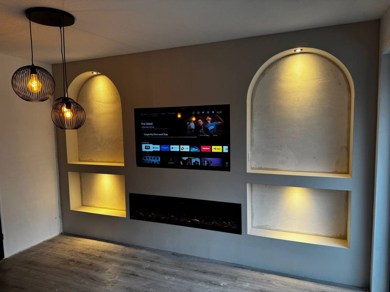 Inbegrepen: Montage in 1 dag, elektrische sfeerhaard installatie, verborgen LED-strips, spotverlichting en volledige elektra-afwerking. Geen rommel, direct genieten.